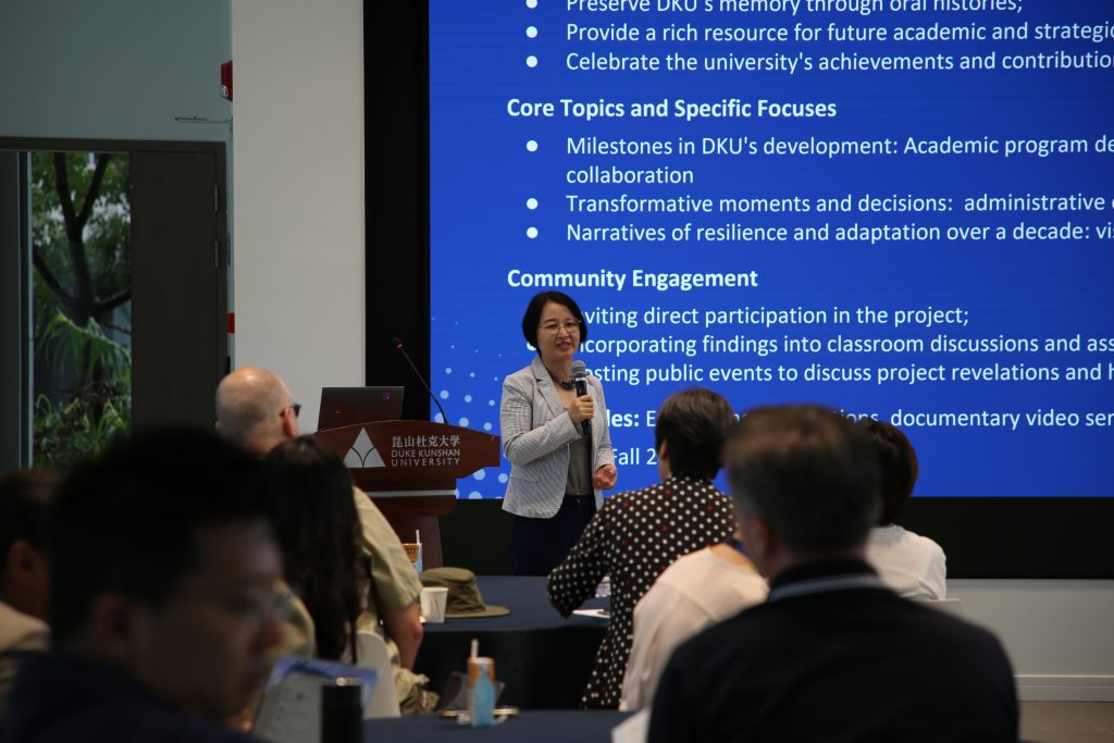 - Oral History Project: Helen Xu presented this project, aiming to document DKU’s 10-year journey through personal narratives from faculty, administrators, students, and staff. This project calls for faculty to share their own experiences and perspectives, preserving DKU’s institutional memory as a valuable resource for future strategic planning.